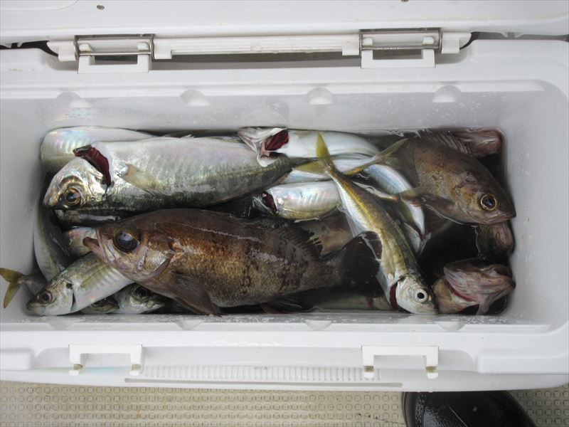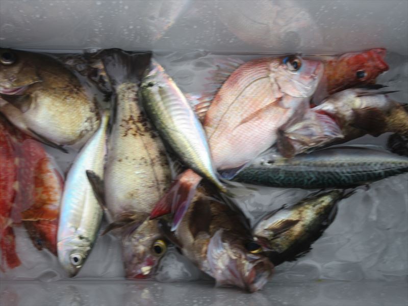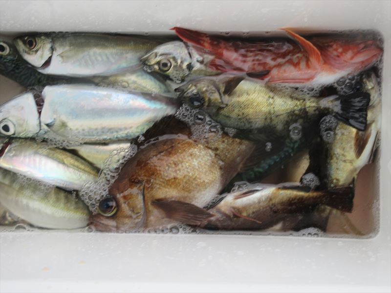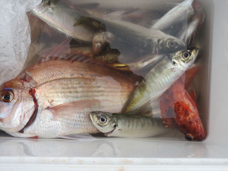 メバルメインにアジ、サバ、カサゴにタイと色々、ポツポツ釣れました。お疲れ様でした。