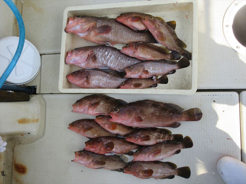 2021.8.2 アコウ 前半は拾い釣りで良型&ビックポツリポツリ😆!後半は数を狙ってポイント移動でバタバタと入れ食いのお客様も😊!暑い中、お疲れ様でした🙍! 2021年8月2日 投稿先 遊漁船の釣果報告 ← 過去の投稿へ 次の投稿へ →