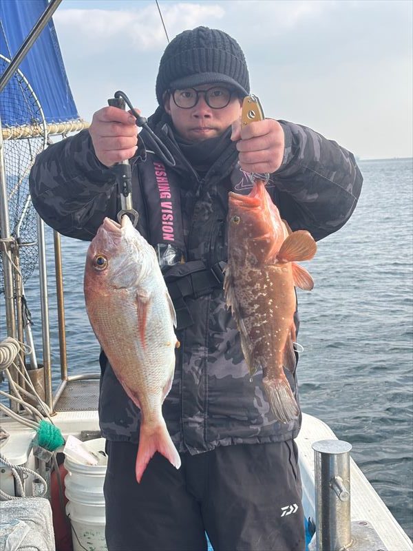 2026.1.27 一つテンヤ 潮の動きが悪すぎて真鯛は小型がポツリ~ポツリ~と寂しいペース😓!ですがアコウが良型混じりでポツ~ポツ~と釣れてくれました😊!お疲れ様でした🙏。 2026年1月27日 投稿先 遊漁船の釣果報告 ← 過去の投稿へ 次の投稿へ →